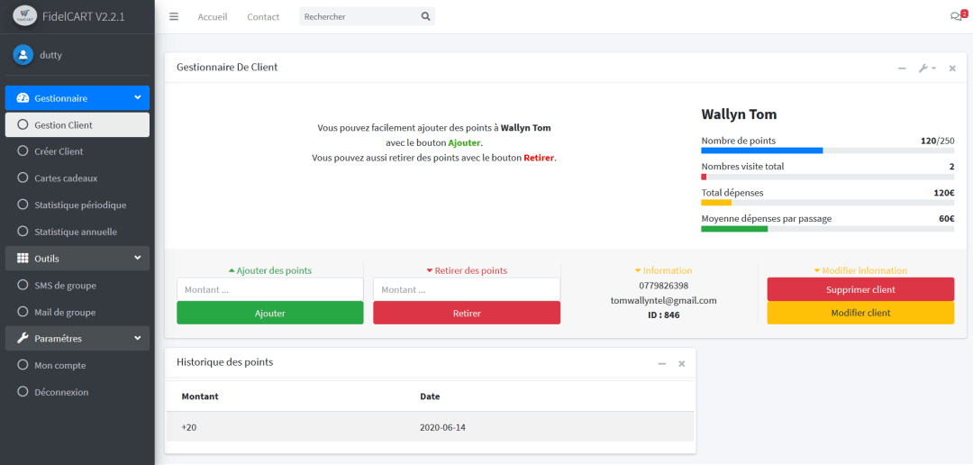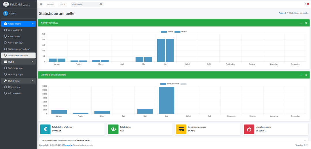 Le tableau de bord de synthèse vous permet de visualiser l’ensemble des statistiques de vente de votre programme fidélité :